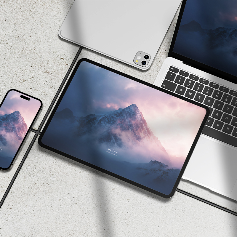 Both versions of this wallpaper (with and without text overlay) come with the following resolutions and ratios to fit a variety of devices. There is even a master file at 8k for you to repurpose for other devices, even slide backgrounds.